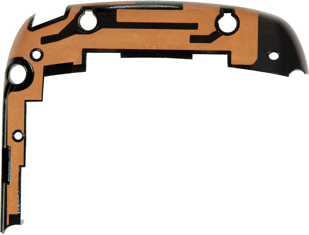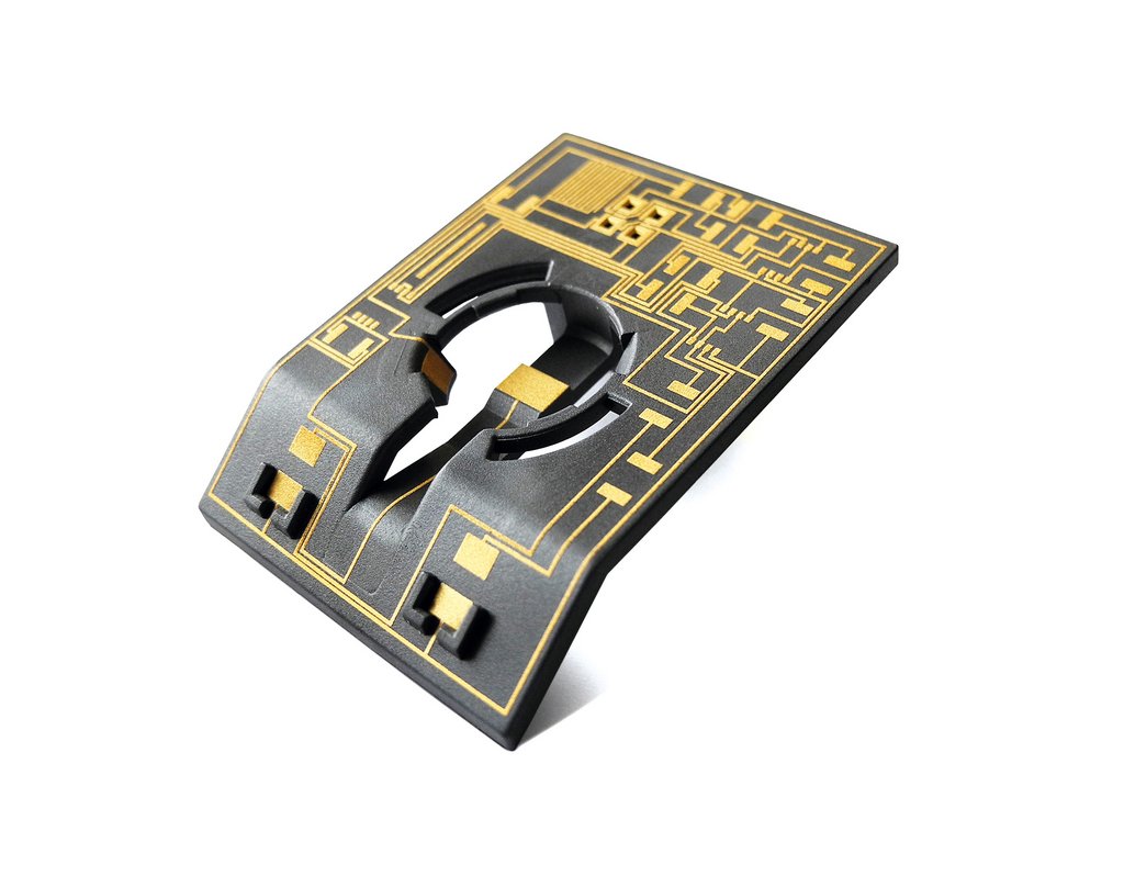 Laser Direct Structuring (LDS) or 3-Dimensional Molded Interconnect Devices (3D-MID) refer to a process where metal can be plated selectively on a plastic. Commonly used for antennas.